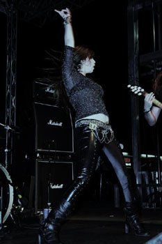 Dani Nolden (Shadowside): I don't do anything special, just some vocal warmup routines and don't get anything cold to drink. Other than that, I just like looking at the crowd a few moments before we start the show so I can get in the mood, there's nothing better than the people's energy for that.