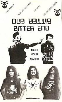 El primer concierto de Bitter End fue en 1987 junto a Forced Entry y Coven, tocando como trío instrumental. Decidiendo finalmente que Matt se encargara, además de la guitarra, de la voz. “Meet Your Maker” (1988) fue la primera maqueta del trío, continuando con conciertos en Seattle y sus alrededores, compartiendo escenario con Alice In Chains, My Sister´s Machine, Wild Dogs, etc. Pasando a cuarteto con la entrada del guitarrista Melcom Wagner, aunque éste no duró mucho, dándole tiempo a grabar una demo de cinco temas con la ayuda del reputado productor Jack Endino para el fichaje de Metal Blade Records / Warner-Elektra-Atlantic.