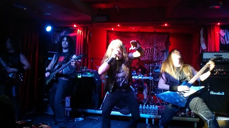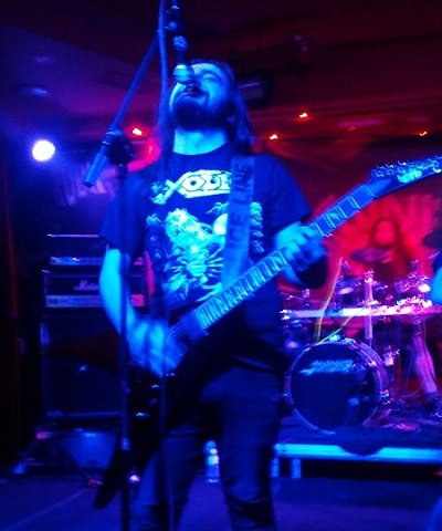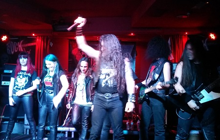Horas, muchas horas de local deben echar porque se nota la banda muy compacta y segura y sumad a eso que les gusta sorprendernos. Una vez más tengo la suerte de tener a Miguel de cicerone que me ha contado los detalles. “Nos mola hacer alguna versión del rollo y sorprender con alguna que nadie espere” me decía, y para el sexto tema sonaba “Under The Guillotine” de Kreator, así que aun seguía la incógnita de cual sería la versión que no era tanto de su rollo. Pues una “Back To Back” de Pretty Maids que les queda de lujo.
