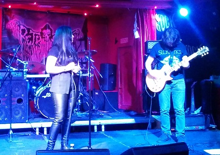 Salieron sin amilanarse con su original formación, un trío formado por voz, guitarra y batería. No, no llevan bajo. La banda practica un doom muy denso y la gravedad de las notas que desprende la guitarra, a su entender, lo hace innecesario. Y fijaos que alguien me comentó en la sala que al principio eran solo guitarra y batería, la voz entró después.