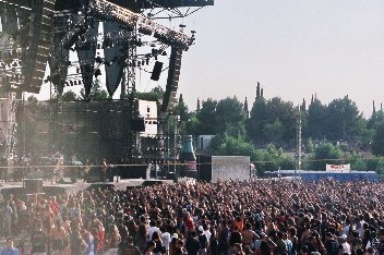 Ángel Arias: Yo me pillé otro rebote porque según me arreglan la cabeza del bajo me ponen un cable porque la emisora se la cargaron también, con la mala suerte que se enreda el cable y tira el micro que estaba amplificando el bajo. Total, que al final se fueron arreglando las cosas, y ves la gente como estaba entregada y, bueno… las tablas también se notan.