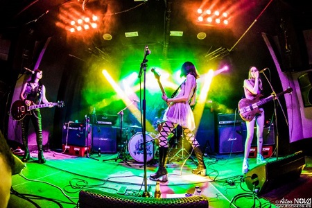 Y llega la hora, la peña expectante y el telón de la Independance bajado. Un guitarrazo por toda intro que arranca gritos de júbilo y PL GIRLS plantadas en escena mientras sube el telón.“Lady Bitch” sonando y las primeras impresiones de que estamos ante una banda que ya está hecha y muy bien hecha. Están en casa y vienen a dejar constancia de su clase.