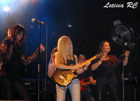 representación de todas ellas, presentó primero a Marisa de la Plaza, tremenda guitarrista que lleva muchos años ya dedicándose a esto de las seis cuerdas, con mucho talento y mérito, porque buenas guitarristas de Rock como ella no se encuentran fácilmente. Y qué decir del resto, tocaba presentar a las grandes vocalistas: Leonor Marchesi, Gema Vau, Gabrielle de Val, Angelita Gómez, Vane Hechicera, Rosa Ibáñez y Begoña Sánchez. Fue un auténtico regalo escuchar a todas ellas cantar el tema “Nuestra generación”, dónde Marisa de la Plaza se hizo un solo espectacular y dónde Javier Mira también participó y estaba encantado.