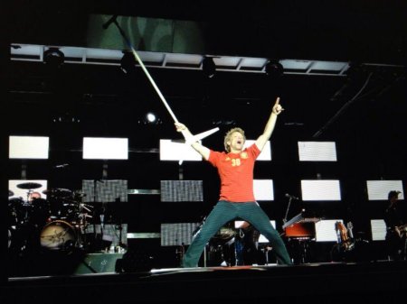 A continuación la balada-medio tiempo, “In This Arms” volvió a caldear el ambiente poco a poco, para acometer uno de los temas más “populares” (que no mejores) de la banda,“Captain Crush And The Beauty Queen Of Mars”, tema en que consigue que todo el público mueva los brazos de derecha a izquierda al son de los movimientos de la guitarra de Jon. Para los no asiduos a la banda, explicaré que, en este tema, lleva ya produciéndose durante varias giras un despliegue de confeti en las primeras filas… de ahí que Jon acabó con un paquete en la mano lanzando también confeti sumándose a la moción. No dejó de tener su punto cómico. Tras ella un tema del anterior disco, “We Weren’t Born To Follow”, que resultó bastante decepcionante en directo también. Si escuchamos el disco y escuchamos el directo, en lo único en que se parecían fue en la melodía, pero el sonido parecía una orquesta. Volvemos al tema guitarras sin presencia, de nuevo bajísimas. Aunque en general, también tengo que decir que el tema siempre ha sonado más flojo en directo. Una lástima porque es un buen tema. Y de nuevo otro tema popular levanta masas: “Who Says You Can Go Home” tema con toques country que siempre consigue que el publico siga con “it’s alright, it’s alright” alargados al final.