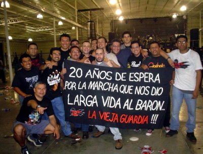 Carlos de Castro: Mira, nosotros, al cabo de los años, nuestro único medio real de expresión son los discos, nuestra música, que es donde únicamente la gente puede decir si lo hacemos bien o lo hacemos mal, les gusta o no les gusta. Porque yo puedo querer tocar con el Sherpa o no, joder, y si no me sale de los huevos por qué voy a tener que tocar con el Sherpa. Porque la gente añora, “joder, porque yo cuando tenía 15 años les vi a los Barón antiguos y me gustaría volverlos a ver”. Joder, bueno, vale, ¿y qué? A lo mejor, si él no se hubiera ido de la banda, a lo mejor seguiríamos estando juntos, no habría que desearlo tanto, pero él cogió y durante 15 años ha estado fuera. Y ahora quiere que le digamos: “venga, pasa, que estábamos jodidos, no sé cómo te hemos podido esperar tanto, estábamos deseando que volvieras”. 15 años, ¿eh? Que se dice pronto. Ponte a pensar lo que son 15 años.
