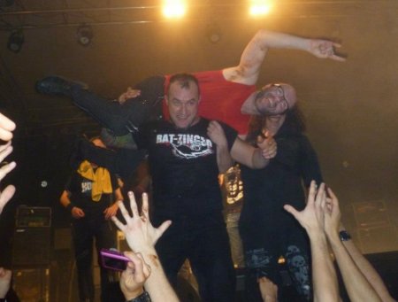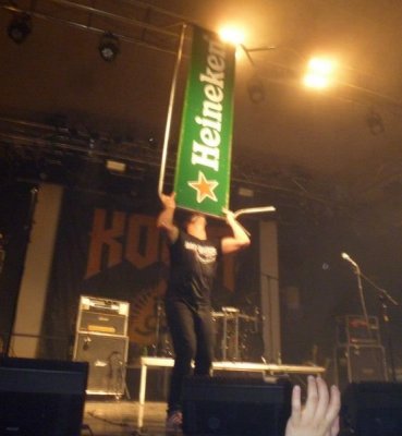 Aquí es donde un Brigi desatao engancha una valla publicitaria de una famosa marca de cerveza y la levanta como pluma de gorrión, no satisfecho con ella la suelta y se va como un poseso hacia Juan Carlos, levantándole también como otra pluma, esta acción mas peligrosa si cabe, porque si se le llega a escurrir, el batacazo que se mete Juan Carlos es de aupa. Una vez más calmado, aplausos, reparto de baquetas, púas y para los camerinos.