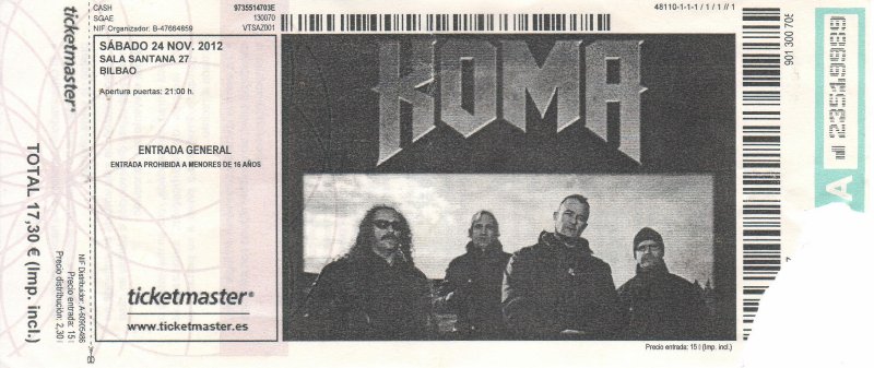 Al principio tanto Natxo, Rafa y Juan Carlos anunciaron que ellos seguían con el nombre de Koma. Recuerdo incluso que en una entrevista realizada a Rafa y Natxo por David “Trovador Urbano” durante el festival Arena Rock de San Fulgencio (Alicante), llegaron a asegurar que ya tenían fichado a un sustituto de Brigi y que en 2013 tenían intención de sacar disco. Para entonces la banda ya tenia anunciado una serie de conciertos (continuando con la gira de “La Maldición Divina”) hasta final de año, con lo que esos conciertos se anunciaron como “despedida de Brigi”. Pero, como era lógico, ese anuncio de abandono y la consiguiente confirmación por el resto de la banda de seguir adelante generó muchas dudas, al menos para bastante gente que seguimos desde hace mucho al grupo, y parece ser que esas dudas también las tuvo Juan Carlos, su gran baterista. Así que el 12 de noviembre nos vimos sorprendidos por un nuevo comunicado anunciando la marcha de Juan Carlos y, por lo tanto, el cese definitivo de la actividad de Koma después de 18 años dando buen rock´n´roll. Para esa fecha, y hasta finales de año, tenían tres conciertos pendientes, Zaragoza, Bilbao y Pamplona, que se convertirían por lo tanto en despedida de toda la banda.