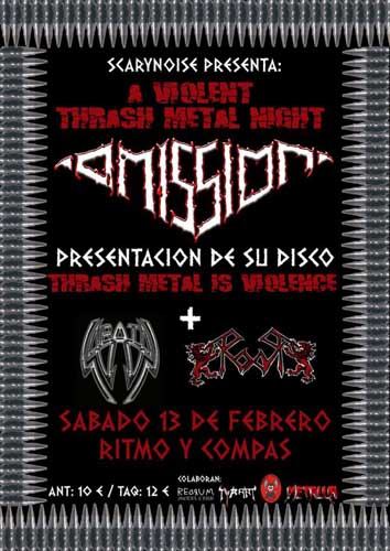 Hace tiempo que había pensado en hacer una entrevista a la banda Omission. Grupo que, en mi opinión, encabeza la escena actual thrasher en nuestro país, sin duda alguna. Una banda que continúa llevando y defendiendo la música, actitud e imagen del Thrash primario de los ’80. Un grupo que está de plena actualidad por la edición de su primer disco y con la inminente presentación en Madrid, el próximo sábado, 13 de febrero, donde volverán a demostrar su fuerza en directo y su infernal puesta en escena.