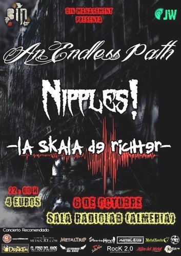 Esa noche de sábado coincidían dos conciertos de Metal en la provincia almeriense. Por un lado, en el pub Zona Rock de El Ejido, se hacía la presentación del VII BrutAlmería Fest., con el concierto gratuito de Himura (Grindcore / Death Metal) y los almerienses Ever Silence (Thrash / Death Metal). Y por otro, al pub de la capital venían desde Las Palmas de Gran Canaria An Endless Path, más Nipples!, y los de la comarca almeriense del Almanzora La Skala De Richter.