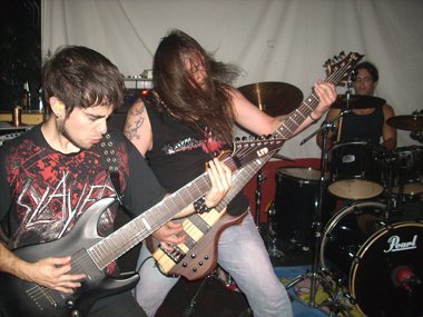 Antes del segundo tema decían quienes eran y que venían de Torrevieja (Alicante), y que nos iban a reventar la puta cabeza (a servidor aparte de la cabeza, por el bochornoso espectáculo le dolían los ojos de lo que estaba contemplando).