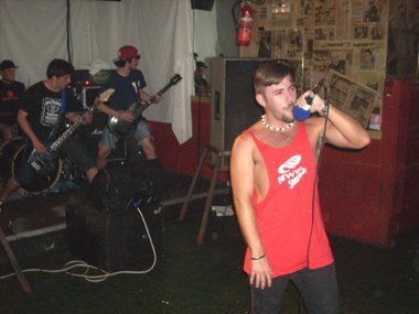 El vocalista desde el primer tema se puso a cantar frente a la gente, llegando a vociferar a veces más cerca de la poca peña y de la barra que del escenario. Berreando, e hincándose de rodillas repetidas veces, moviendo el micrófono a los lados erróneamente, ya que en esas ocasiones la voz apenas se oía, aunque con el excesivo volumen de los instrumentos en otros momentos tampoco se percibía bien, sumado a los numerosos acoples que se escuchaban… aquello fue más bien un suplicio.