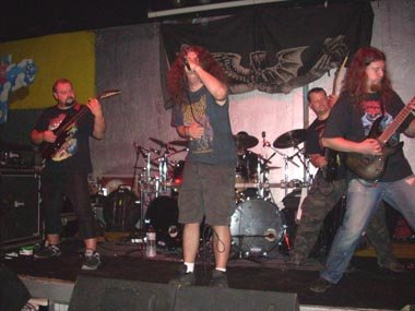 El vocalista nombraba nuestra ciudad, y hacía gestos para que nos acercáramos al escenario, pocos de los que allí estábamos les hicieron caso, dando paso a “Into The Depths Of Abomination”, segunda y última canción de su actual EP, que me recordó a Morbid Angel, siendo la banda norteamericana una de las principales y marcadas influencias de los checos. Estaban sonando realmente bien y en condiciones, con su huracanado Death Metal, destacando en el citado tema la sucesión de solos técnicos entre los guitarristas. Viéndose la guitarra de Jaroslav como pequeña ante su cuerpo.