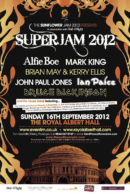 El cartel anunciado hace unos meses para la edición de 2012 era francamente impresionante: Alfie Boe, Bruce Dickinson, Ian Paice y Jon Lord iban a verse acompañados por una banda en la que destacaba la presencia de Micky Moody (ex-Whitesnake), Uli Jon Roth (ex-Scorpions) y Murray Gould a las guitarras, con Jerry Brown a la batería, Nick Fyffe (ex-Jamiroquai) al bajo, Brian Auger al órgano Hammond y Paul Wix Wickens (Paul McCartney) al teclado y como director musical. Por ello no dudé en conseguir unas entradas, con la satisfacción añadida de que el dinero sería empleado para una buena causa. Con el paso de los meses, más artistas fueron añadiéndose al cartel original (Brian May y Kerry Ellis, el ex-Led Zeppelin John Paul Jones, Alice Cooper, la artista blues escocesa Sandi Thom y Mark King de Level 42) aunque, lamentablemente, el fallecimiento de Jon Lord debido a complicaciones derivadas del cáncer, nos privase de ver a una leyenda viva en el escenario del Royal Albert Hall. Esta última circunstancia motivó que parte de la noche fue un tributo a Jon Lord y su legado.