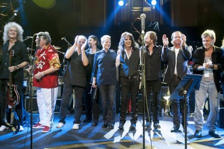 El último artista en aparecer en escena fue Alice Cooper. Sobrado de presencia escénica y escaso de voz, el norteamericano puso a bailar a todo el mundo con dos acertadas auto-versiones de “Elected” y “School’s out” que sirvieron para poner el punto final a la noche. ¿Punto final? No exactamente porque, como es habitual, hubo un bis, en este caso una magnífica versión de “Smoke On The Water” con todos los músicos en escena, Bruce Dickinson llevando la voz cantante (nunca mejor dicho, aunque Alfie Boe y Sandi Thom también cantasen algún verso) y haciendo participar al público, y Micky Moody, Brian May y Uli Jon Roth alternando solos. Fue el broche de oro para una gran noche.