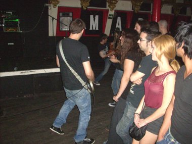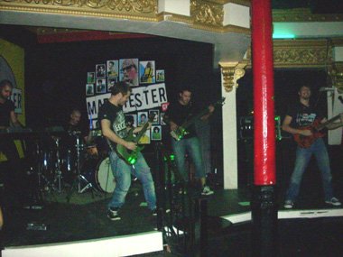 Personándonos a eso de las 22 horas, o pasados pocos minutos, en la puerta de la sala Madchester, allí nos encontrábamos con la persiana de la puerta bajada, y tan sólo esperando dos chavales, y la amiga Carmen “Rising”, con la que habíamos quedado. Menos mal que al ratillo ya abrieron y se podían comprar las entradas (entrada en condiciones a tan sólo 5 € y con derecho a una consumición, ¡¡¡regalado, oiga!!!). Aunque creía, iluso de mi una vez más, que no se demoraría más de una hora el comienzo del concierto, pensando que los de la sala Madchester eran más estrictos en la hora de comienzo, y más habiendo leído que a la una de la madrugada los conciertos deberían estar finalizados. En fin, que no sé si fue por culpa de los de la sala, o de los grupos, aquello comenzó pasados cerca de diez minutos de las once de la noche.