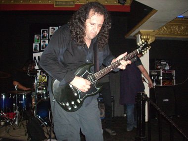 Sin apenas respiro, el vocalista Fernando Broseta (con nueva imagen respecto a la del año pasado, luciendo una especie de casaca, no de mi agrado, aunque para gustos… y con un corte de pelo a lo mohicano) nos daba las buenas noches, y queriendo que coreáramos ante la siguiente, “Joven caos”, donde nos presentaba la nueva incorporación con su largo pelo rizado… Cristian Alcántara (sustituto desde marzo de este año de Rubén de la Calle; un buen bajista que ha estado en diversos grupos de Rock, Reggae, Jazz-Fussion, Blues… como Combo Contemporáneo, 39 Escalones, L.S.D. (Laudable Sepia Dominical), Mafia Blues Band, etc.). Rafa nos “ametralló” con su Gibson Les Paul negra, y se nombraba después al batería (José Manuel) y al guitarra solista Juan Diego (Jandiè Serrano), quien acto seguido, con su Ibanez floreada, realizaba su buen solo.