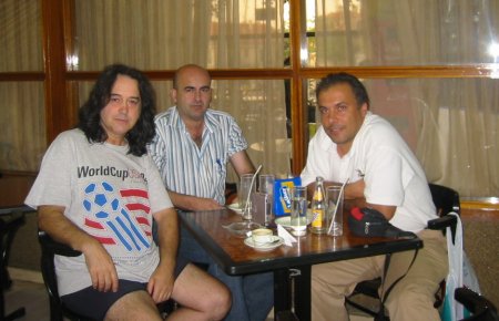 Sherpa: Sí, estuvimos el otro día tomándonos unas cervecillas y fue muy agradable, yo creo que fuimos sinceros los cuatro, olvidamos los malos rollos… y yo también comprendo que los hermanos tengan sus reticencias a que nos juntemos, porque llevan ahí 14 años con una formación más o menos estable, tienen suficientes galas como para ir viviendo bien y yo entiendo que tengan miedo a que de repente vuelva la antigua formación, hagamos tres meses de puta madre y luego vuelvan otra vez con su formación, y ya es como raro, ¿no? Yo eso lo entiendo, y algún día, si se dan las circunstancias, nos juntaremos y si no…