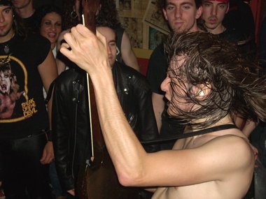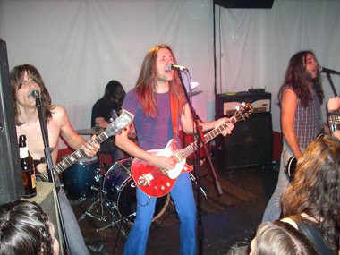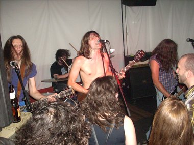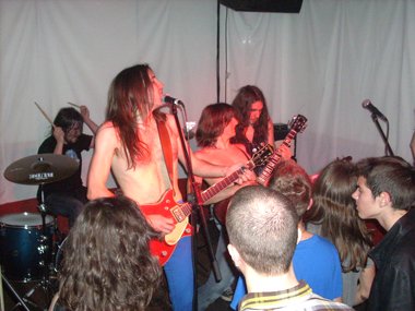 Parte de la peña rendida al joven cuarteto, repitiendo una y otra vez su nombre y, tras el baño de masas, “Krestu” volvía a hablar recordando la época en que Manolo (no el batería) y él habían fundado la banda hace unos años, pidiendo al tal Manolo (estando por allí) que subiera al escenario, pero no accediendo éste. Volviendo ahora a retomarla con los actuales tres compañeros. Dedicándole con un te quiero a Manolo, y al público… “Paranoid”, tras la cual el guitarrista volvía a dirigirse a la concurrencia para decir que: “Somos tan jóvenes que no se nos puede llamar ni chavales, pero aún así amamos el Rock & Roll más puro y auténtico”… tocando“Johnny B. Goode”, encargándose de la voz “Krestu” en el comienzo del tema, con la peña bailando, y acabando con una chavala gritando en el escenario “¡¡¡Viva el Rock and Roll!!!”.