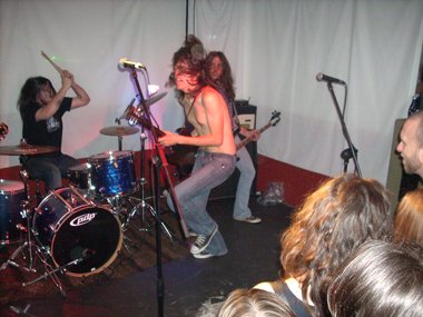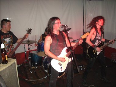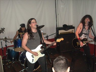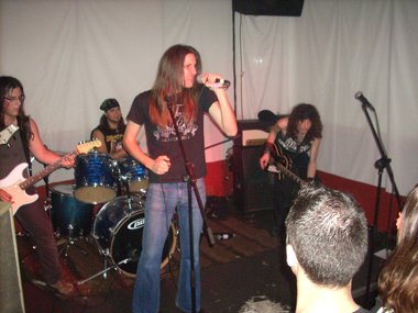 Siguieron con dos clásicos de allende nuestras fronteras: “Living After Midnight” (Judas Priest) y“Deuce” (Kiss), entre medias “deleitándonos” con un eructo el joven y enjuto guitarrista, quien se lanzaba al suelo durante una parte del tema de los maquillados norteamericanos.