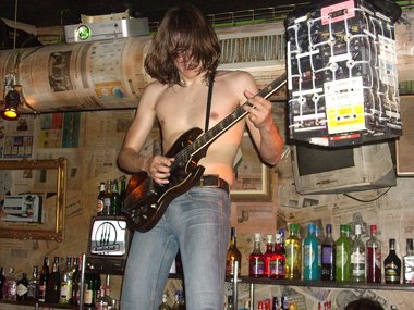 LG pedía que bajaran un poco las luces, y es que estaban asándose en el pequeño escenario. Si al despliegue de adrenalina y movimientos (especialmente de “Corre-escenarios” LG) le añades el calor de las luces… pues sudores a mares. Armand volvía a dirigirse al público para presentar la siguiente canción, siendo del segundo disco, el cual vendían por ahí, en el puesto atendido por Eva. Preguntaba“Are you ready for Rock´n´Roll?… We´re ready!!!”, para atacarnos con “Are You Ready For Rock´n´ Roll?”.