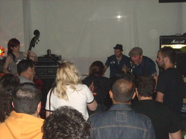 Servidor está totalmente pez en los terrenos por donde se mueven con gran desparpajo el trío húngaro, pero nos hicieron disfrutar de lo lindo con sus rockeras canciones, haciéndolas que las siguiéramos al compás con los pies y movimientos de caderas. Lo patético durante el gran concierto de la banda de Budapest fue tener que soportar el afán de protagonismo y el querer ser el centro de atención de una niñata que iba de rocker, a la cual nadie tuvimos el valor durante la actuación de mandarla a tomar viento (ni a su veterano acompañante, aunque éste no llegara a los grandes extremos patéticos de la cría). Porque una cosa es bailar y disfrutar a pie de escenario, sin molestar a nadie, y otra es subir cada dos por tres para vociferar y hacer la imbécil, pero bueno, no merece que pierda más el tiempo contando sobre la lamentable “actuación” de semejante ser.