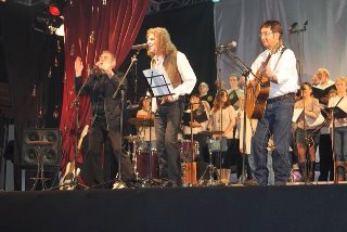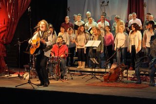 La calidez vocal de Miguel le permite acometer temas de cualquier estilo, y siempre nos sorprende con alguno de ellos. En esta ocasión lo consiguió con “Flying To The Moon”, del mítico Frank Sinatra. Aquello sonaba redondo, ayudado por la maestría de Javier Bermejo y Jesús Utande, excelentes músicos que están adaptados por completo a este tipo de sets acústicos. Mientras el tema terminaba, en la parte trasera del escenario iba tomando posiciones el Coro Vallekanta, una numerosa coral que iba a enriquecer aún más la musicalidad del concierto.