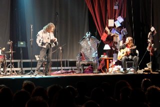 Se nos quedó un poco cara de circunstancias, pero pronto nos repusimos. Antes de que los músicos volvieran a sus posiciones, Teté Delgado volvió al escenario acompañada de otra actriz, Maribel Ripoll, ambas ataviadas con túnicas, recitando hilarantes poemas breves que arrancaron más de una carcajada al público presente.