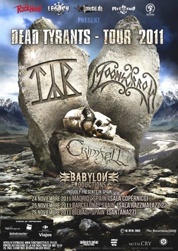 Segundo día en la capital del país antes de viajar el día de después (viernes) al extranjero, y lo aprovechaba por la tarde / noche para ir a otro concierto. Si la noche anterior había estado viendo a los fineses Turisas y los catalanes Northland, hoy tocaba asistir a la primera fecha de las tres que había por nuestro país del “Dead Tyrants Tour 2011”. Una gira que recorría parte de Europa con bandas de diversos estilos de lo que se cataloga como Folk / Viking Metal. Alternándose en la cabeza de la gira los finlandeses Moonsorrow con Týr (procedentes de las Islas Feroe, y antiguos compañeros de la gira europea llamada “PaganFest. 2008”, también compuesta por Ensiferum, Korpiklaani, Eluveitie), siendo acompañados esas dos formaciones por los también fineses Crimfall y por Hamferð (grupo compatriota de Týr). De éstos últimos me enteraba semanas antes que se incorporaban al tour gracias a visitar la página de la productora que traía esta interesante gira a nuestro país, Babylon Productions, a quienes hay que agradecer mucho que muy amablemente nos concedieran una acreditación.