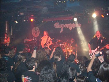 Ville daba las gracias a Madrid, y si no escuché mal dijo que anteriormente habían estado tres veces en España (si no yerro, en los festivales Atarfe Vega Rock 2006, en el Alhama Metal Madness 2007, y en el Heavy Metal Heart 2009 en Villalpardo, Cuenca), presentando después “Raunioilla”, el primer corte de su tercer álbum: “Kivenkantaja” (Spikefarm Records, 2003).