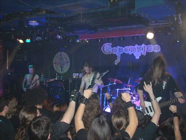 Almorzando más tarde de lo que tenía previsto y encontrándose la sala en el oeste de Madrid, me di prisa en comer, ducharme, y salir pitando a coger el Metro para llegar a tiempo a la sala Copérnico. Lugar en el cual había visto unos cuantos conciertos años atrás, si “Neury” no me falla ni patina: Riot; Beyond Fear + Vicious Rumors + Solar Fragment; y Fates Warning. Saliendo del Metro de Argüelles me dirigí y caminé por las calles por donde recordaba que me llevarían a Copérnico… aunque al final tuve que preguntar a unas cuantas personas por la calle de la sala porque me hice un lío.