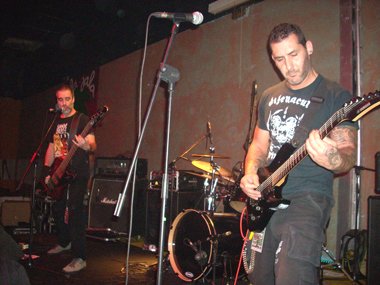 Proseguían sucediéndose temas como “Adoctrinados” (de su disco), “El instinto de la raza humana” (del próximo compartido con Velocidad Absurda), “Barbarie” (de la maqueta “Todo comienza a arder”, 2008), “Violento despertar” y “Virus” (ambas del disco de 2010), “Camuflaje”(de la maqueta)… la mayoría cortos y de una gran contundencia, pero que a servidor le resultaron en general, y en esa primera toma de contacto auditiva, monótonos.