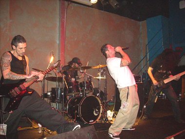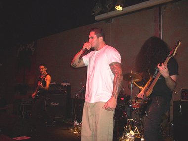 El vocalista Javi pedía a la peña que se acercara más, y el bajista Alfonso lo secundaba haciendo gestos de que la gente se fuera más adelante. Así tras “Fucking Race”, de aquel “Void” (Repulse Records, 1997), se agradecía a Hecatombe Records por permitirles estar allí.