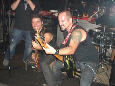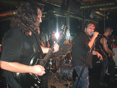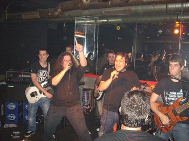 Veinte minutos pasaban de la media noche cuando el quinteto procedente de Valencia, ya posicionado en el pequeño y bajo escenario, arrancaba su descarga de Heavy Metal con “Fuego del Cielo”, con esas melodías y cabalgar que pueden traer a la mente a Iron Maiden o Tierra Santa. Después de un rápido buenas noches y decir quienes eran por parte del vocalista Fernando Broseta, éste presentaba“Quiero”, otro tema de su segundo disco, “Barro y lágrimas” (2009), comentado por servidor no hace mucho por estos lares y del cual se encontraban aún presentando en vivo por parte de la geografía española. El segundo corte del citado disco, fue acompañado por las voces de parte de la peña al ritmo de la canción, teniendo ésta melodías arábigas. Apenas escuchándose la aportación en coros. Citando el vocalista durante el tema al guitarrista Rafa Vida. Con el cambio de ritmo a lo Maiden que hay en la composición, se volvía a solicitar el apoyo vocal del público, acabando Fernando subiendo y manteniendo su voz.