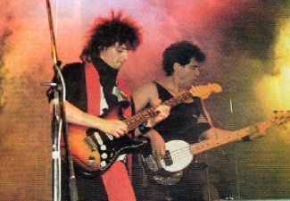 José Luis Jiménez: No había mucha técnica pero teníamos muchas ideas, joer, teníamos un montón de ideas, estábamos siempre elucubrando, había un montón de material, pero chocábamos en que no nos gustaban las cosas que Julio quería meter, y entonces había dos facciones que estábamos siempre chocando, y eso era muy jodido. Y las actuaciones en vivo eran la hostia, pero nosotros echábamos de menos un poco más de lujo, de técnica… entonces nos buscamos a Terry y a Víctor porque tocaban de puta madre. Luego ellos se buscaron a otros chicos y tocaban de puta madre también, es decir, que los dos mejoramos.