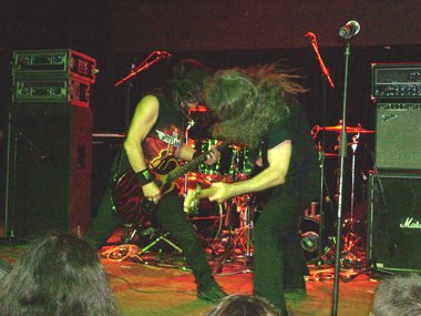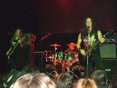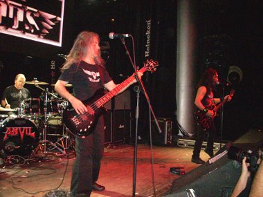 Tres minutos faltaban para las 20.20 h. cuando era el turno del ahora trío canadiense. Steve “Lips” Kuldow empezaba a calentar guitarreando, desembocando en “March Of The Crabs”, para servidor, como ya he dicho en anteriores ocasiones, una de mis instrumentales preferidas en el Heavy Metal. Aquella instrumental que formaba parte de su “Metal On Metal” (el primer disco que me compré de ellos en aquel viaje de estudios de 3º de B.U.P. hace ya su tiempo) fue enlazada sin parón al corte que cerraba dicho vinilo, “666”.