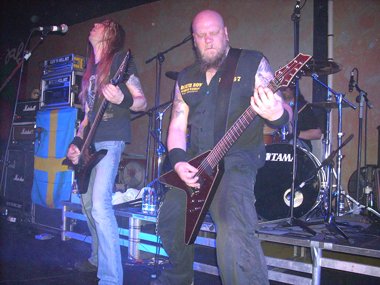 Segunda vez que la banda comandada por Ola Lindaren (voz / guitarra) descargaban su auténtico y clásico Death Metal en Almería. De aquella primera vez, junto a Nile, Belphegor y Between Ther Frost, en septiembre de 2008, ya te dimos cuenta por aquí. Los suecos venían con novedades en sus filas respecto al pasado, a Ola Lindaren y el batería Ronnie Bergerståhl les acompañaban el grandote guitarrista Mika Lagrén (Facebreaker) y el espigado bajista Tobias Christiansson (Dismember, ex-Necronaut). También volvía a lucir la bandera sueca colgada bocabajo en uno de los altavoces, tras el bajista.