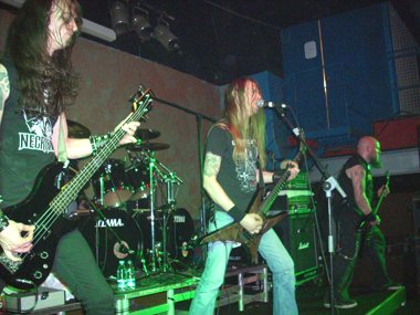 Cayeron algunos temas de su último disco, “Burial Ground” (Regain Records, 2010), como “Liberation” (si no me confundo), pero la chicha estuvo al descargar perlas de su discografía, y clásicos ya del Death Metal de la escuela sueca, como “Banished To Life”, “You´ll Never See…”(con apoyo en los coros, que apenas se oían, del bajista Tobias Christiansson), “Hating Life”… y acabando su gran concierto con las enormes “Day Of Mourning”, “Soulless” e “Into The Grave”, en la que Ola nos hizo repetir unas cuantas veces con entusiasmo la palabra “grave” al presentar el tema-título de su primer álbum que en el presente 2011 cumple ni más ni menos que veinte años ya, y que como has podido comprobar descargaron unas cuantas gemas del citado disco.