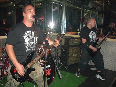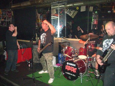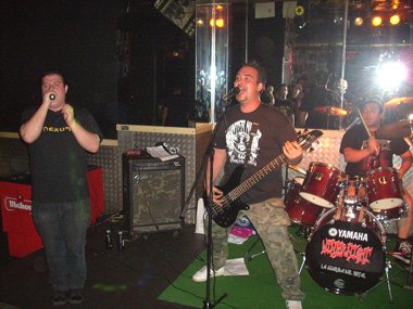 Cuando el reloj marcaba la medianoche, el renovado cuarteto irrumpía con desmesurada energía en el pequeño escenario del garito con el tema “War Of Fear”, comiéndose en ocasiones los infernales berridos de Chester la voz de Rhandy Roal. Bajo mi modesto punto de vista es algo que no debería suceder, puesto que la voz de Chester debe servir sólo de apoyo o acompañamiento, aunque quizá la culpa fuera del sonido dado desde la mesa de mezclas al bajista / vocalista Rhandy, puesto que luego en Taifa la voz de Luis Massot también se escuchó baja.