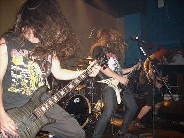 Cuarta vez que veía a Vengeance Soul, y segunda que pisaban el escenario de la Jala Jala (la anterior en febrero de este año, integrando el cartel del “II Sábado de Akelarre”, reseñado por aquí). Había habido cambios en las filas del joven grupo, Ricardo “Satán” dejaba su puesto al aún más joven (creo yo) David “Calimotxo”, y aunque éste tenga menos pintas que el anterior vocalista, eso es lo de menos, al menos para mí. Cantando y berreando David, para mi gusto, mucho mejor que su predecesor. Aunque aún le quede trecho que recorrer, y lograr más desparpajo y movimientos en escena.