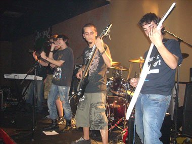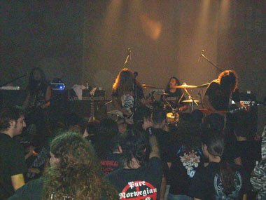 “Phalari´s Bull” fue su canción de inicio, empezando ya desde ese instante los pogos entre la masa que se agolpaba frente al escenario. Tema de corte Death Metal melódico (estilo que cosecha el sexteto) con melodías guitarreras por obra de Carlos (Transylvania) y Miguel Ángel. Lo malo era el sonido, y es que cuando veo tras la mesa de mezclas al técnico de sonido que pone la sala, me pongo a temblar de las atrocidades sonoras que nos esperan auditivamente. ¿Alguien me podría decir algún concierto que haya sonado en condiciones en este lugar cuando el responsable total es esa persona?
