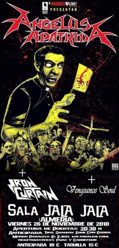 A los manchegos les iban a acompañar muy acertadamente los speed / thrashers murcianos Iron Curtain (en su tercera visita a Almería), además de los jovencísimos Vengeance Soul (por mí hubiera incluido en el cartel un grupo de la provincia más acorde al estilo de esa noche, como los thrashers Alaja). Pero un día antes se informaba de la caída de los murcianos. Perdiendo así la noche una doble descarga de buena tralla para no olvidar.