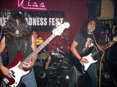 Luis (voz y guitarra), Lucas (bajo) y Guille (batería) estuvieron alrededor de media hora descargando con intensidad, sonando a una mezcla de Heavy / Thrash Metal con ramalazos de Punk-Rock / Hardcore, revolucionándose parte del público realizando pogos en el pequeño habitáculo Haciéndome gracia tres féminas, de pequeña estatura, próximas a nosotros, que huían o se resguardaban cuando parte de la peña comenzaba a danzar cerca del escenario.