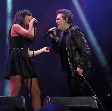 La primera invitada femenina de la noche tiene una larguísima relación de amistad con Miguel Ríos, como así se ocupó de comentarnos, aprovechando la ocasión para tirarle una puya a Sánchez Dragó. Una sonora ovación acompañó la entrada en el escenario de Ana Belén, quien nos sorprendió a todos luciendo un cuerpo espectacular embutido en un ceñidísimo traje. Desde luego, a sus 59 años no se puede pedir más. Su espectacular voz y su complicidad con Miguel Ríos nos regalaron una memorable versión de “El río”, uno de los temas más antiguos de la carrera de Miguel.