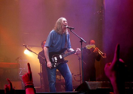 Tras unos momentos para recuperar el resuello, Miguel nos presentó al segundo invitado de la noche, José Ignacio Lapido (del grupo 091), con quien cantó el precioso blues “En el ángulo muerto”, acompañados por uno de los mejores momentos del espectacular juego de luces disponible en el escenario. Este tema, perteneciente a la carrera en solitario del propio Lapido y que se encuentra también en el último disco de Miguel Ríos, supuso una ruptura con el trepidante comienzo del concierto, y nos mostró la parte más sentimental de la noche.