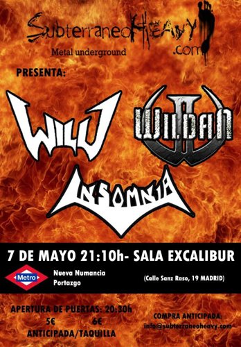 El cartel organizado por los colegas de Subterráneo Heavy juntaba a tres formaciones que se están consolidando poco a poco en el ámbito del más clásico Heavy Metal en nuestro país, y a un precio más que asequible (5 anticipada, y 6 en taquilla) que se agradece en los tiempos que corren. Por fin iba a poder presenciar un directo de Wild, tras quedarme con las ganas de verlos en su visita a Murcia a comienzos de año. A los malagueños Wildan ya había tenido oportunidad de verlos en directo, tras su primer concierto el pasado verano en el bolo de la asociación granadina Metalmancho, y que ya te reseñé por estos lares. Y a los jóvenes Insomnia los descubría semanas antes gracias a su inclusión en el cartel de esa noche.