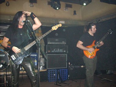 Cuando llegué a la entrada de la sala, allí no había nadie, pero me cercioré que habría concierto al traspasar las puertas y ver que en el escenario (situado en la parte superior derecha, según se entra, en la zona habitual donde hay sillones y mesas, y delante de la puerta de los cuartos de baño) estaban probando sonido. Luego, tras una corta espera en la puerta del recinto, la gente fue llegando poco a poco y comencé a encontrarme con peña conocida como el gran Vadillo (que venía acompañado, entre otros / as, por colegas holandeses y un canadiense que habían venido para el IV Pounding Metal Festival) y hasta un paisano y su chica (¡hola Jorge C. y “Aneiv”!).