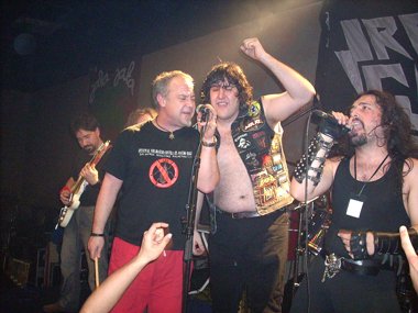 Tenían tiempo de hacer un tema más, optando por hacer una versión especial, en esta noche Maiden, pero antes Willy presentaba a Mr. Jorge Cortés, anunciando que era su cumpleaños, arrancándose Mike (Iron Curtain), que estaba a pie del escenario viendo y disfrutando como uno más la descarga, con el “cumpleaños feliz”, cambiándolo repentinamente con “al pasar la barca me dijo el barquero”… jajaja. Tras ese momento de buen rollo, nos satisfacían plenamente con“Phantom Of The Opera”, con los cuerdas juntos en la derecha de las tablas, y después “Choco” subido en la tarima de su zona, botando después, cantando la peña… ¡¡¡grandioso!!!