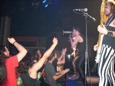 Y para acabar la magnánima faena “Metal Of Hell”, donde invitaron a la peña a subir al escenario y cantar con ellos. Acompañándoles, entre otros, algunos organizadores, y amigos que viajaron con ellos desde Murcia (¡ese Marcos “Muletas”!). Consiguiendo que por fin Mike se lanzara al público, tras escaparse al final del III Heavy Metal Espectros Festival, jajaja.