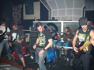 Lástima que la gente no respondiera como debería haber sido, acudiendo tan sólo alrededor del medio centenar de personas. Aunque tras los dos primeros grupos, aquello comenzó a llenarse de más peña que se pegaba a la barra y zona próxima. Gente habitual del garito que les dejaron entrar para consumir y esperar a que acabaran los conciertos. No vi nada lógico que a esas personas se les permitiera el acceso al local sin pagar su entrada. Les deberían haber dejado entrar justo al acabar los conciertos, no durante, y encima sin abonar entrada ni una parte de ella. Muy mal por los responsables del local, pero claro, es su negocio e hicieron lo que les dio la real gana, en detrimento del organizador del concierto. Pero servidor piensa que ese tipo de cosas se tenían que tener bien claras desde el momento que se contacta para realizar conciertos allí.