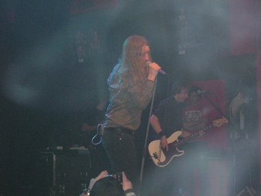 “Demon Eyes” fue la segunda canción de la noche, con la guitarra de Paul Mahon sonando menos saturada y dando más equilibrio al sonido. Ahora bien, el protagonista del invento es sin lugar a dudas Cormac Neeson. Me sorprendió la buena voz que tiene para el directo, es más, cantó con una potencia y una energía impresionantes y para el tercer tema “Come Follow Me” ya tenía una sudada considerable. Eso sí, su afán de idolatrar a Robert Plant debería de controlarlo un poco, y es que casi todos los gestos y movimientos parecían un clon del cantante de Led Zeppelin, pero insisto que esto no le resta absolutamente ningún entero, porque durante todo el concierto su voz estuvo inconmensurable.